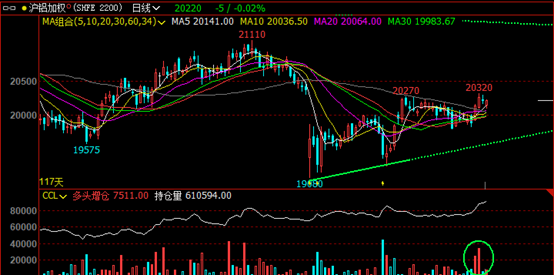 结合盘面走势,上月中发布行情观点,铝价恰好在20300附近。周五07合约收盘20465,期间最低触及19845。主力资金选择在6月合约交割的时间挤仓,6.11号开始盘面多头增仓明显,放量突破前期压力位。
