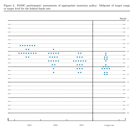 美联储官员预计未来几个月美国通胀情况将恶化,但仍预计在2025年年底前将降息两次,与3月份的预测一致。