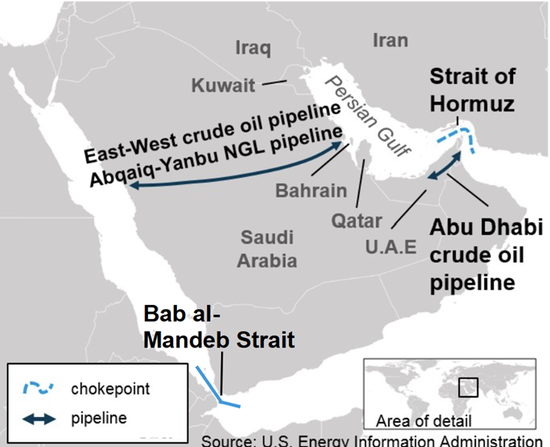 沙特阿拉伯和阿联酋拥有可绕过霍尔木兹海峡的基础设施,在一定程度上能缓解海峡运输中断的影响。