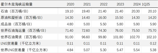 2024年,通过该海峡的石油流量平均为2000万桶/日,相当于全球石油液体消费量的约20%。2025年第一季度,通过霍尔木兹海峡的石油总流量与2024年相比保持相对平稳。2024年和2025年第一季度通过霍尔木兹海峡的流量占全球海运石油贸易总量的四分之一以上,约占全球石油及石油产品消费量的五分之一。