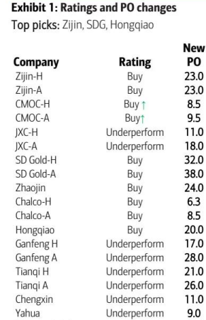 因此,美银将信义光能的评级从买入下调至中性,将洛阳钼业(CMOC)的评级从中性上调至买入。美银的首选是紫金矿业、山东黄金、中国宏桥。美银重点指出这些表现不佳的标的:通威股份、赣锋锂业、天齐锂业 。详见下表: