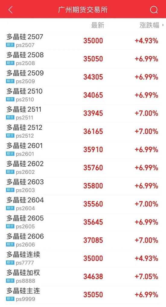 7月2日,多晶硅期货多个合约涨停,主力合约收盘价为35050元/吨,创近期新高。