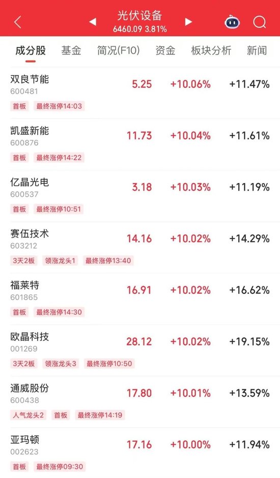 金元期货分析师王妤认为,相关商品如玻璃、硅料等大幅上涨,也是多晶硅期价上涨的原因之一。期货日报记者留意到,A股光伏概念股昨日午后再度走高,其中赛伍技术、双良节能、凯盛新能、亿晶光电、欧晶科技等股票涨停。