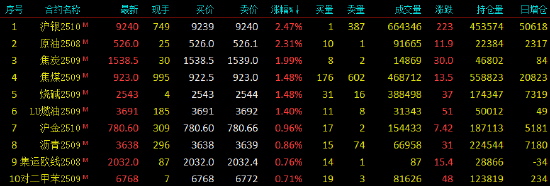 2025年7月14日,早盘开盘,国内期货主力合约涨跌不一。沪银、SC原油涨超2%,焦炭、焦煤、烧碱、低硫燃料油(LU)涨超1%。跌幅方面,淀粉、玉米、硅铁跌超1%。