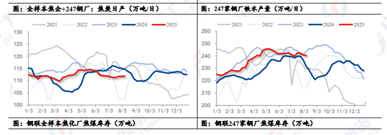 需求方面,下游焦化企业开工逐步提升,焦炭连续提涨焦化利润修复,叠加下游钢厂补库需求较好,开工有进一步提升可能;钢厂近期由于钢价上涨,普遍盈利较好,铁水保持高位,目前247家样本钢厂铁水产量仍处于240万吨/日水平,给予原料需求支撑。