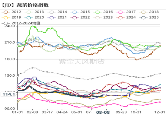核心观点:底部震荡 8月初市场各环节情绪相对悲观,主动备货意愿较差,冷库库存持续释放,各环节库存累积,现货价格持续回调,近期中下游食品以及深加工企业陆续开始建库,需求端逐步回暖,但冷库蛋仍在继续投放,淘鸡节奏虽然有些加快,但并未达到预期。若按目前的供应节奏,因在新增产能呈现增加趋势情况下,供应过剩压力或将导致需求旺季难以兑现。此外今年蔬菜较往年同期退市较晚,截止到8月中旬,蔬菜均价仍在近几年同期较低位置,鸡蛋旺季替代需求减弱,若8月中下旬供应压力难以缓解,现货价格反弹空间将有限,产区均价难以突破3.5元/斤。但若8月现货价格持续低迷或超预期下跌至成本线以下,淘鸡节奏将加快,从而短暂减缓9月需求旺季供应压力。