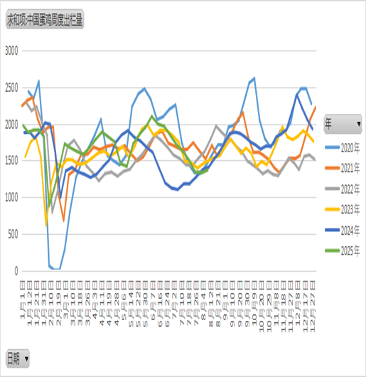 此外今年蔬菜价格退市较晚,供应充裕,鸡蛋替代需求减弱,因此鸡蛋替代需求大幅低于去年同期。