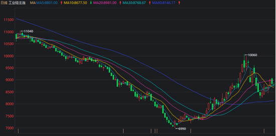 上周工业硅期货价格小幅上调。主力25011合约开于8450元/吨,收于8710元/吨,周内高点8830元/吨,低点8225元/吨,周涨2.53%。