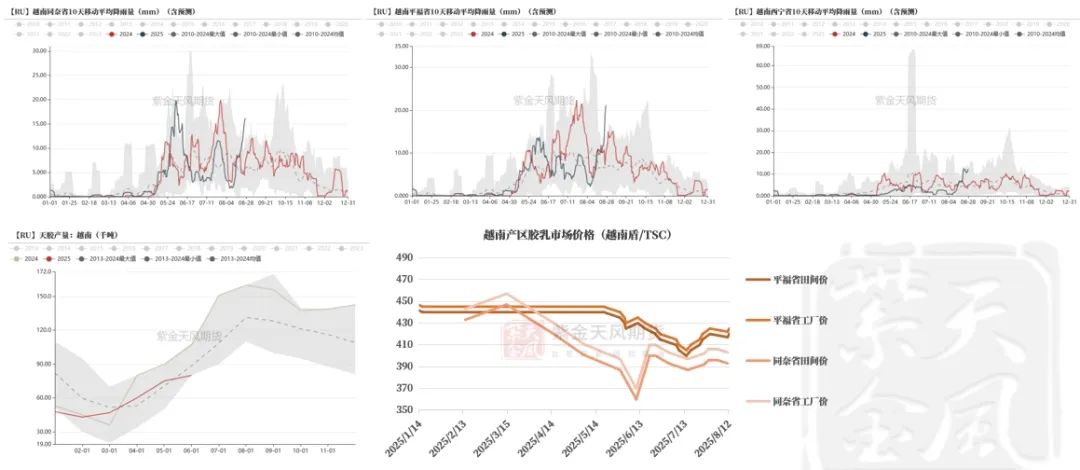 数据来源:路透,QinRex,紫金天风期货研究所越南:强降水扰动,阻碍割胶