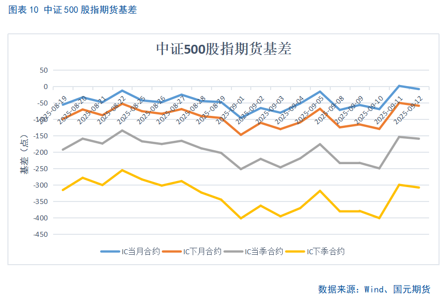 上周主要股指未延续跌势而是全线反弹,上证指数再创近十年新高,深成指与创业板指涨逾2%。两市日均成交虽回落但仍在2万亿元以上,活跃度维持较高水平。股指期货IC、IM远月年化贴水率升至10%以上,资金对中长期走势仍偏谨慎,风险溢价和套保需求抬升;从成交结构与情绪观察,尚未出现过热迹象。
