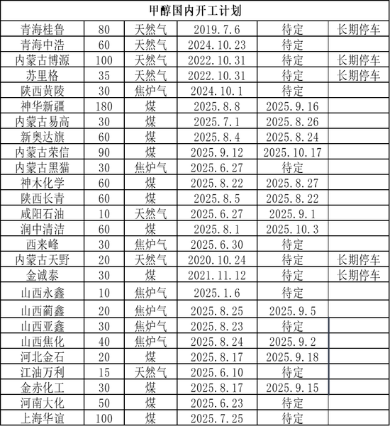 9月:近期部分装置仍有重启的计划,神华新疆、河北金石、金赤化工9月中下旬有重启的计划,且煤制甲醇盈利水平尚可,预计开工将有所回升。
