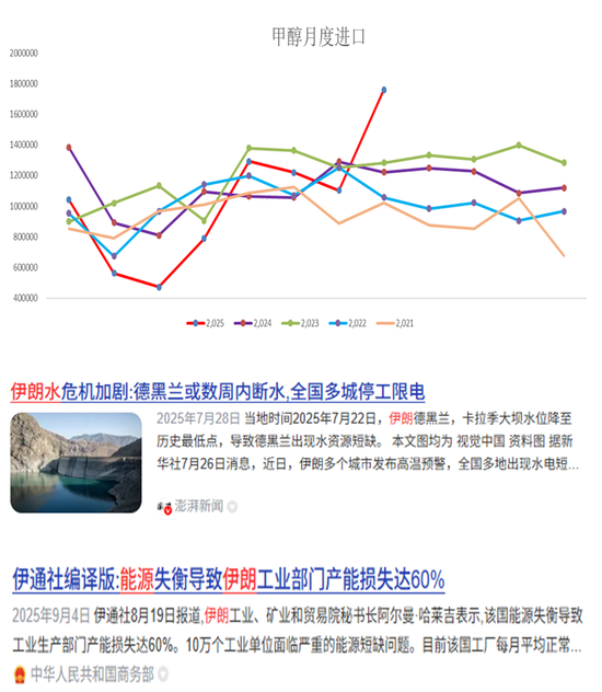 另一方面是伊朗限气的预期:结合7、8月以来国内主流媒体都在报道伊朗缺天然气、缺水、缺电非常严重,按这个去推理,提前限气似乎是比较合理的(伊朗总产能持续扩张一旦限气启动,停产产能基数更大,对市场的冲击也更为剧烈),需要重点关注伊朗何时限气。