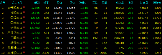 2025年9月26日,早盘开盘,国内期货主力合约涨跌不一。沪银、低硫燃料油(LU)、燃料油、集运欧线涨超1%。跌幅方面,20号胶(NR)、橡胶、焦煤跌超1%。
