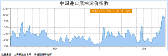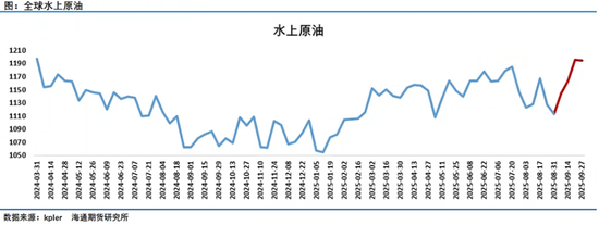 中东原油基准的现货溢价持续下跌,迪拜、穆尔班和阿曼原油价格均跌至数周新低,随着欧佩克+的增产持续推进,反映出市场对供应过剩的担忧正在加剧。而油轮运费9月以来大幅拉升成为一个热点,虽然本周根据上海航运所数据显示运费略有回落,但仍处于近年来绝对高位,根据 Clarksons 的最新数据,VLCC现货加权平均水平在9月中旬升至103,200 美元/天,个别航次甚至突破15万美元/天。这一场景揭示了大量的原油正投放到市场中来。从航次数据来看,中东(MEG)9 月放货量超过165单,较上月显著增加,10 月预计更高,美湾–远东航线也保持活跃,候选船极为有限,这种现象的背后是水上正有庞大的原油在运输途中。所以最近二周时间原油市场看似库存数据并没有给油价带来压力,但可能这是大幅累库之前的短暂平静期,就像台风眼中的平静。这个(累库)压力可能要在后续的时间体现到市场中。根据Kpler的高频数据跟踪9月份全球范围为包括浮动仓储及运输中的原油较8月底增长了8000万桶,这部分原油增量到达目的地之后预计石油市场将呈现非常明显的库存累计。