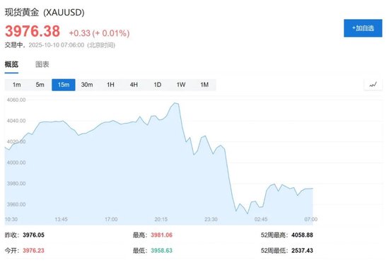 截至发稿,现货黄金价格报3976.38美元/盎司,现货白银价格报49.04美元/盎司。COMEX黄金期货收跌1.95%,报3991.1美元/盎司;COMEX白银期货收跌2.73%,报47.655美元/盎司。