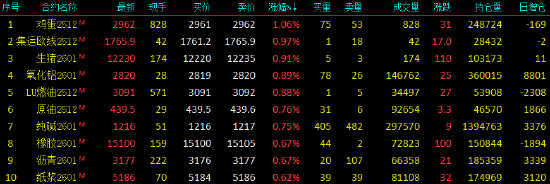 2025年10月22日,早盘开盘,国内期货主力合约涨跌不一。 鸡蛋涨超1%,集运欧线、生猪、氧化铝涨近1%。跌幅方面,沪银、沪金跌超5%,豆二、豆粕跌超1%。