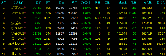 2025年10月27日, 早盘开盘,国内期货主力合约涨跌不一。生猪涨超2%,国际铜、集运欧线涨近2%,鸡蛋、沪铜、液化石油气(LPG)、低硫燃料油(LU)、燃料油涨超1%。跌幅方面,红枣、沪金跌超1%。