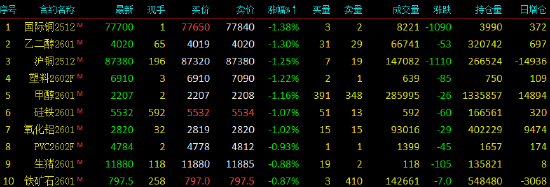 2025年10月31日,商品期货开盘,沪银、燃料油、沪金主力合约涨超1%。国际铜、乙二醇、沪铜、塑料、甲醇、硅铁、氧化铝跌超1%。