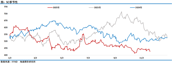3.下半年震荡承压(6-12月):6月,中东地缘冲突(以色列空袭伊朗核设施)引发油价脉冲式反弹,SC原油期货6月23日单日暴涨6.90%,但随后因美伊停火,地缘溢价快速消退,6月30日回落至496.7元/桶。下半年,随着OPEC+持续增产(8-9月增产幅度达50万桶/日)及全球经济增速放缓(IMF预计2025年全球GDP增速为3.2%),SC原油期货持续承压,10月17日主力合约刷新了年内低点跌至430.5元/桶。