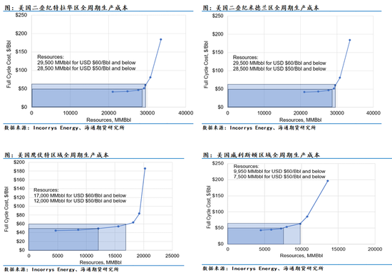 在美国威利斯顿地区有750 亿桶石油资源的开采成本低于每桶50美元,近1000 亿桶石油资源的开采成本低于每桶60美元。