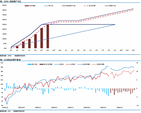 除了特朗普通过一系列的举措影响到了油价的运行节奏。2025年主导原油重心下移的的最核心驱动是欧佩克+的提速增产,从决定增产,到三倍速提产、再到四倍速提产,用6个月完成220万桶/日自愿减产退出计划,然后又让人意外的决定4季度继续推进165万桶/日减产计划的退出行动,2025年欧佩克+给市场注入了太多的供应增量。这样会带来供应过剩局面,欧佩克不会不知道,但沙特为代表的石油输出国还是非常坚决的快速增产,虽然欧佩克反复强调其增产是因为原油市场需求强劲,维持石油市场稳定是其首要目标。但市场明显注意到了在经历了此前2年多的减产支撑市场之后,减产努力对油价的维护作用已经日渐式微,在不能让油价维持高位的局面下,通过“低成本优势+主动增产”的组合策略,应对美国页岩油为代表的非欧佩克+产油国的竞争挤压,拿回市场份额、维护自身在全球能源市场的地位就成为了欧佩克的首要目标。而这个代价就是虽然有地缘冲突、制裁和额外的储备需求的缓冲,原油市场仍出现了明显的过剩,这最终让油价重心较2024年下移了10美元。