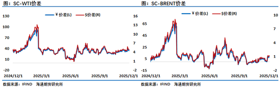 2025年原油市场月差波动比上一年大了很多,这意味着原油市场供应端的扰动带来了不确定性,随着特朗普重新当选美国新一届总统,其一系列关税、制裁、地缘摩擦举措给原油市场带来了明显的波动,上半年对俄罗斯制裁、以伊地缘冲突均让月差大幅冲高,而欧佩克+的提速增产又让月差从高位修复,但整体来看月差结构2025年可以说是大起大落,随着供应过剩压力的逐步显现,月差下半年整体呈现了逐步走弱的迹象。