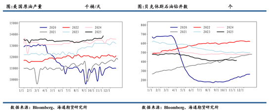 当然在这个基础上,原油市场供应端还面临地缘动荡、制裁带来的扰动,这些不可靠因素带来的影响在2025年市场参与者已经充分领教过,从目前的全球局势来看2026年的原油市场仍然面临这些不确定性因素的影响。而走低的油价会对原油供需二端同样有所影响,2025年油价几次跌破60美元时,美国石油钻机数均出现过明显回落,而低油价同样会提升原油在能源市场的竞争力提振消费需求,而且随着油价的走低会提升相关原油消费国储备建库需求,这意味着原油市场纸面的供应过剩压力可能会低于预期。