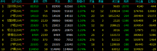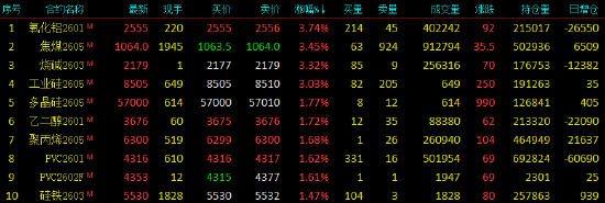 2025年12月15日,早盘开盘,国内期货主力合约涨跌互现,氧化铝、焦煤、工业硅、烧碱涨超3%,多晶硅、乙二醇、聚氯乙烯(PVC)涨近2%。跌幅方面,国际铜、沪银、沪铜跌超2%,碳酸锂、沪铝、铝合金跌超1%,棕榈油、菜油、铁矿石、豆一、豆油跌近1%。