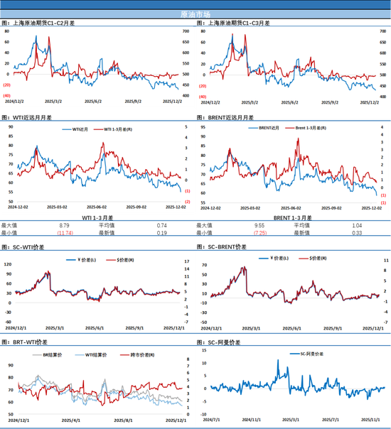 事实上包括我们在内的诸多机构都在持续提醒下原油市场四季度后将迎来供应过剩压力最为集中的阶段,12月11日EIA公布的月报大幅上修了过去2个月原油市场的供应过剩压力日均超400万桶/日,这也印证了多方高频数据显示的原油市场不断累积的库存。而12月以来欧洲市场为代表的柴油裂解差快速回落,完全回吐了对俄制裁带来的扰动,这也意味着地缘、制裁等因素的影响逐渐弱化。近期美国扣押运输委内瑞拉原油的油轮,让委内瑞拉石油出口陷入瘫痪,市场对此也反映平淡,进一步证实了地缘等题材已经难以对抗供应过剩这一利空带来的下行压力,在这样的背景下油价关键支撑纷纷被击破,在我国SC原油率先刷新年内低点之后,周三布伦特原油也失守了60美元关口,而如果只看收盘价,欧美原油也在周三刷新了年内最低收盘价。