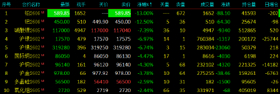 2025年12月30日,早盘开盘,国内期货主力合约多数下跌。铂跌停,跌幅13%,报589.85元/克;钯跌超12%,碳酸锂跌超7%,沪银、沪锡跌超6%,沪铜国际铜跌超4%。涨幅方面,沥青甲醇涨超1%。