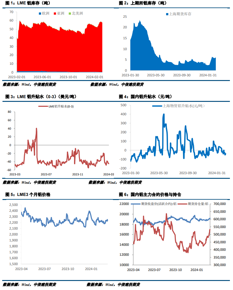 小结:美国2月非农数据略超预期,但失业率上升以及薪资增速放缓使得市场对今年降息的预期未发生较大变化,宏观情绪尚可。基本面看,两会之后国产矿石供应逐渐宽松,氧化铝现货价格有下跌压力,成本端支撑减弱。电解铝供应端云南复产进展缓慢且规模有限,供应压力不显。消费端下游持续复工,除建筑型材外其余板块订单尚可,铝锭累库幅度收窄,铝棒库存压力仍存,短期沪铝偏强运行为主。